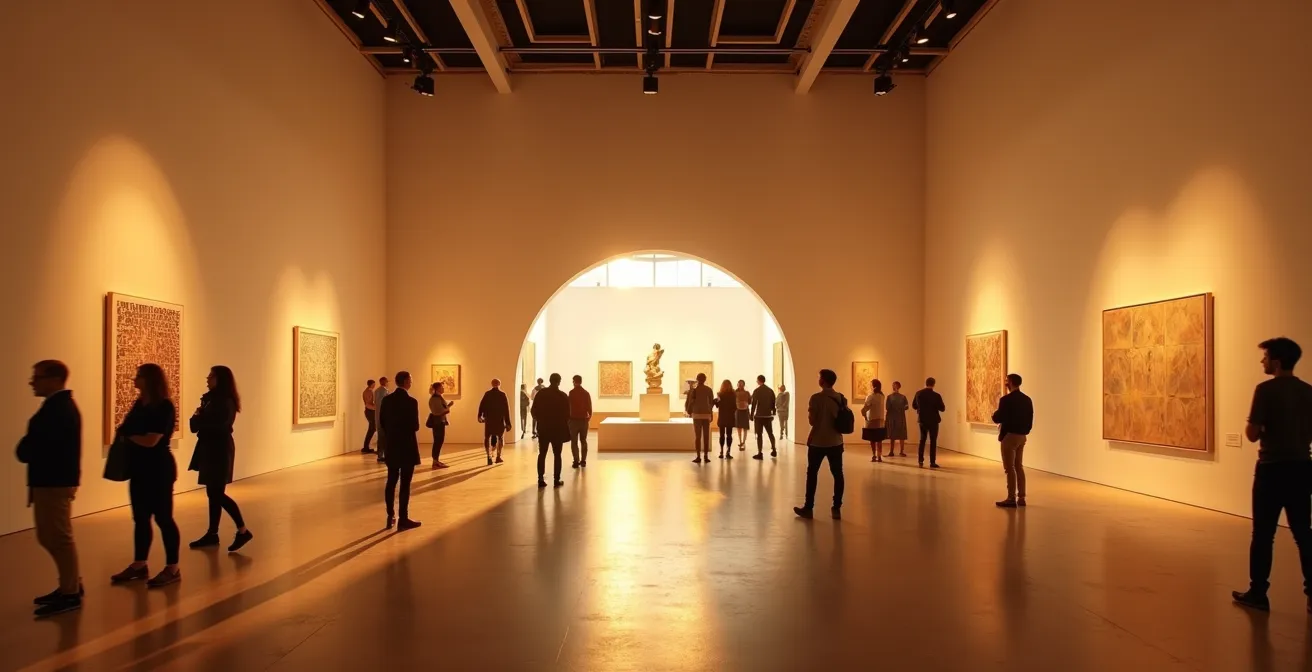 La tecnica più semplice ed efficace è l’uso di un vuoto strategico. Posizionare un’opera su un’ampia pedana o semplicemente lasciare un notevole spazio vuoto attorno a essa crea un’aura di importanza e suggerisce naturalmente una distanza di rispetto. Un’altra strategia potente è la micro-architettura sensoriale, che utilizza cambi di materiale a pavimento. Il Museo Egizio di Torino ha magistralmente implementato questa idea, utilizzando sottili variazioni nella texture del pavimento per creare “linee di desiderio” tattili che guidano i visitatori e definiscono le aree di rispetto attorno ai reperti. Questo intervento, quasi impercettibile a livello conscio, ha portato a una riduzione del 45% dei contatti accidentali con le opere e a un miglioramento del 30% nella fluidità del percorso.